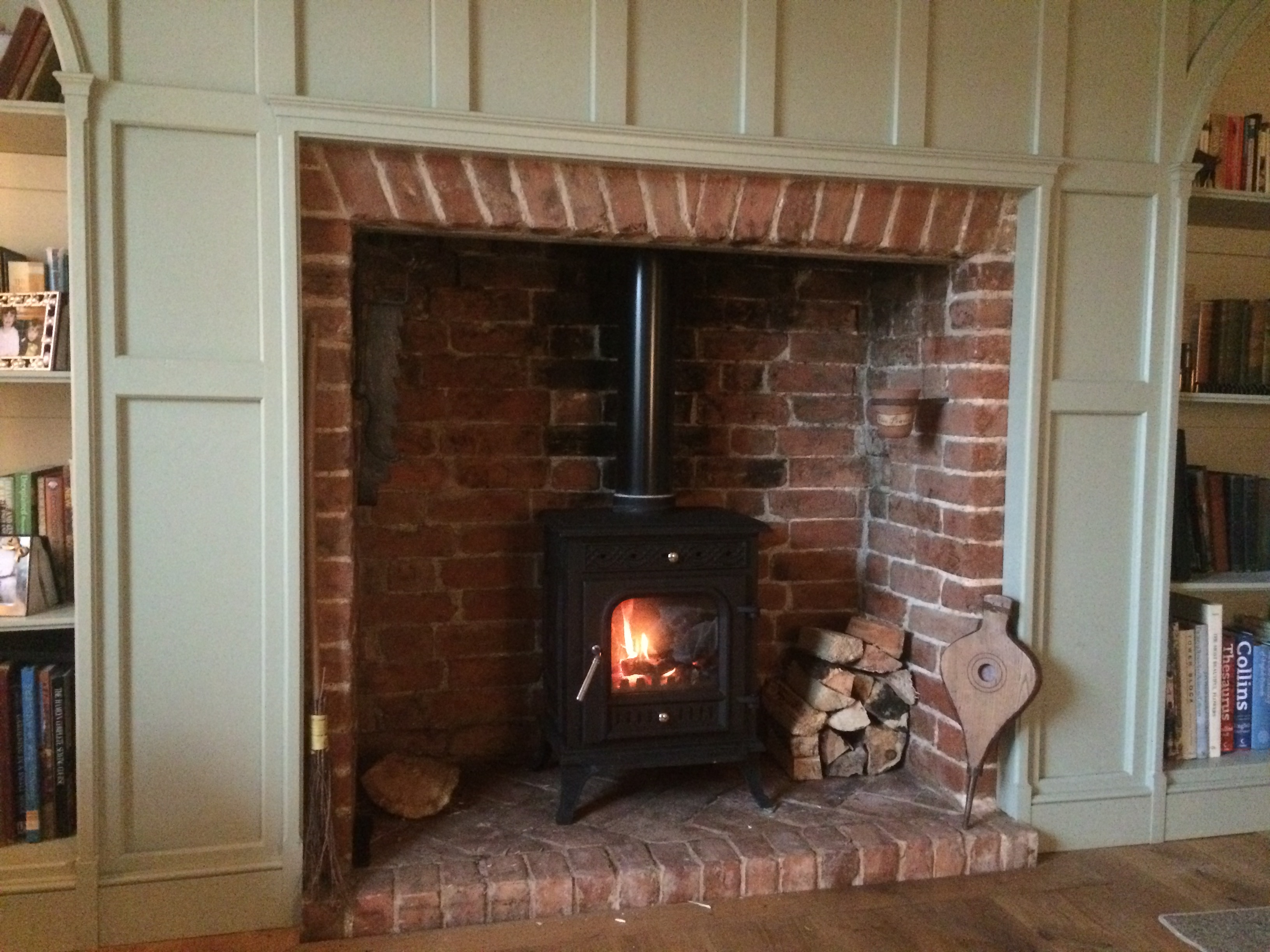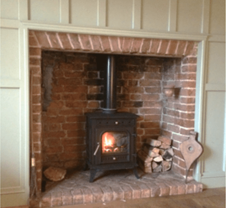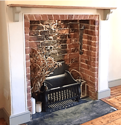 19th century ‘Rowlock’ lintel, herringbone brick hearth, bespoke wooden fire surround